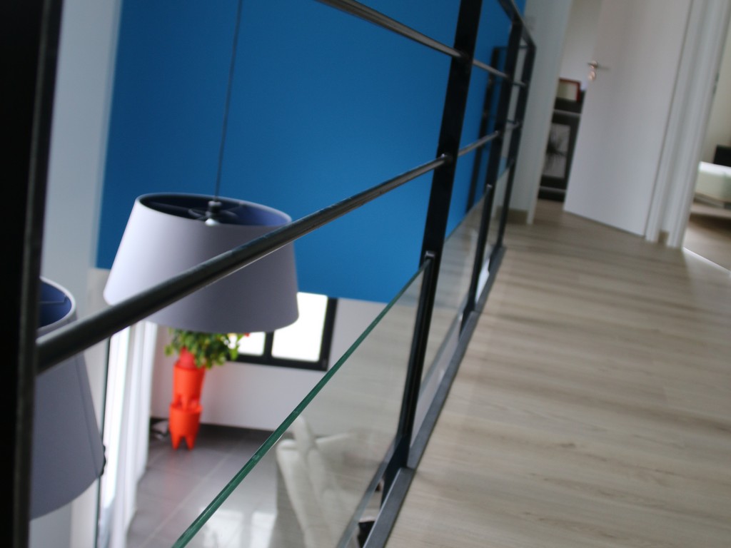 Réalisé par un artisan Ferronier, un escalier métallique vient trouver place au milieu de ce projet.